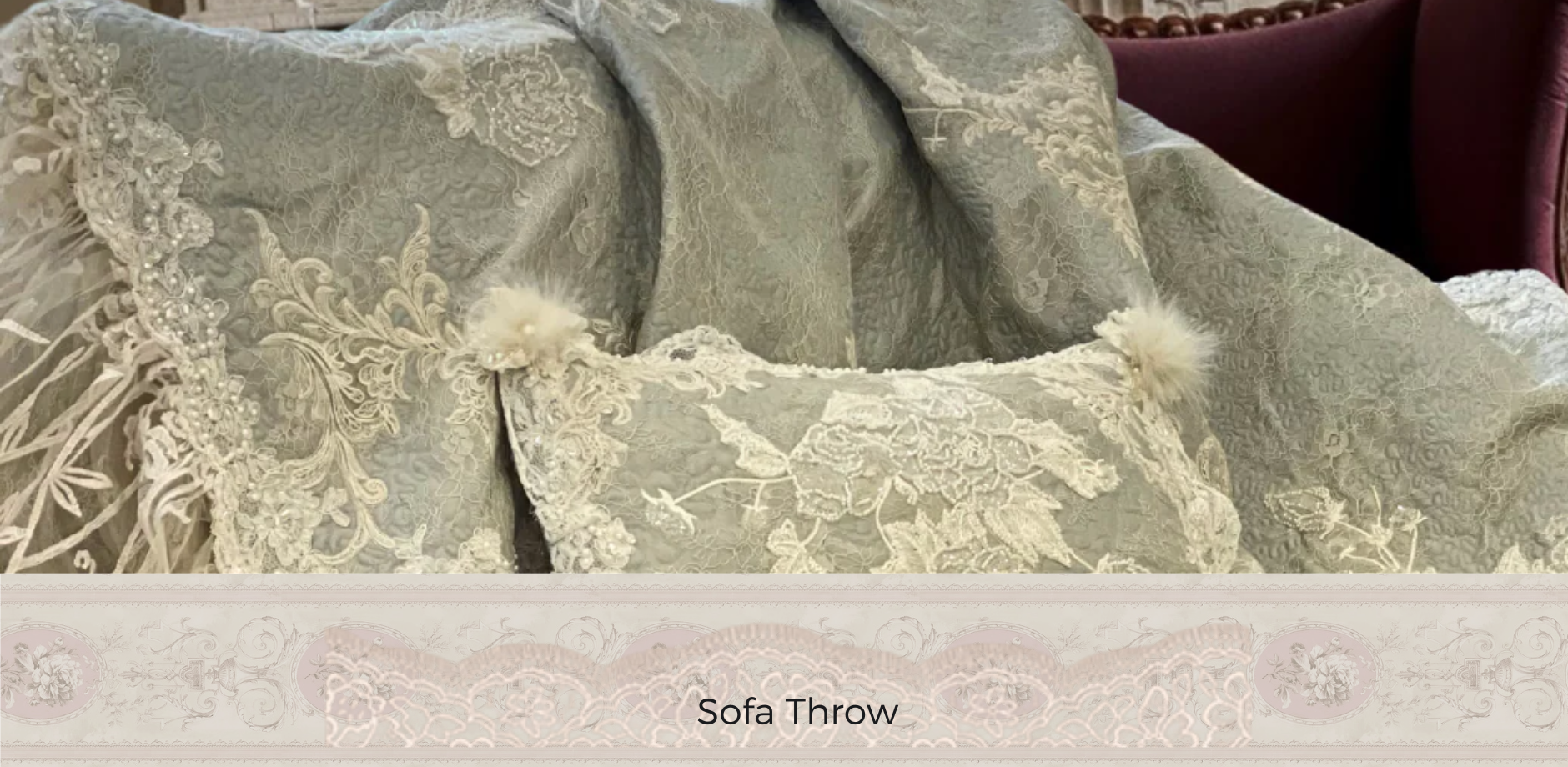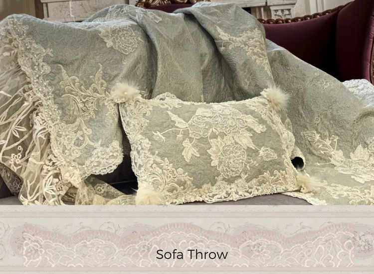 Saranghae Size - Cushion Cover : : 12 " x 20" / 32 cm x 50 cm Sofa Throw -75"x28"|193 cm x 74 cm Fabric - Satin, Lace Extra info - Cushion has plain back with zipper . Filler not be included. Photo colours...- MRP ₹. 28,000.00