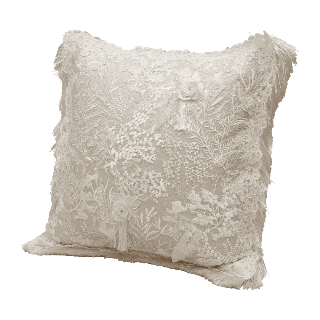 Extra info - Cushion embellished , lace, quilted front and plain back. Photo colors may vary slightly from actual.