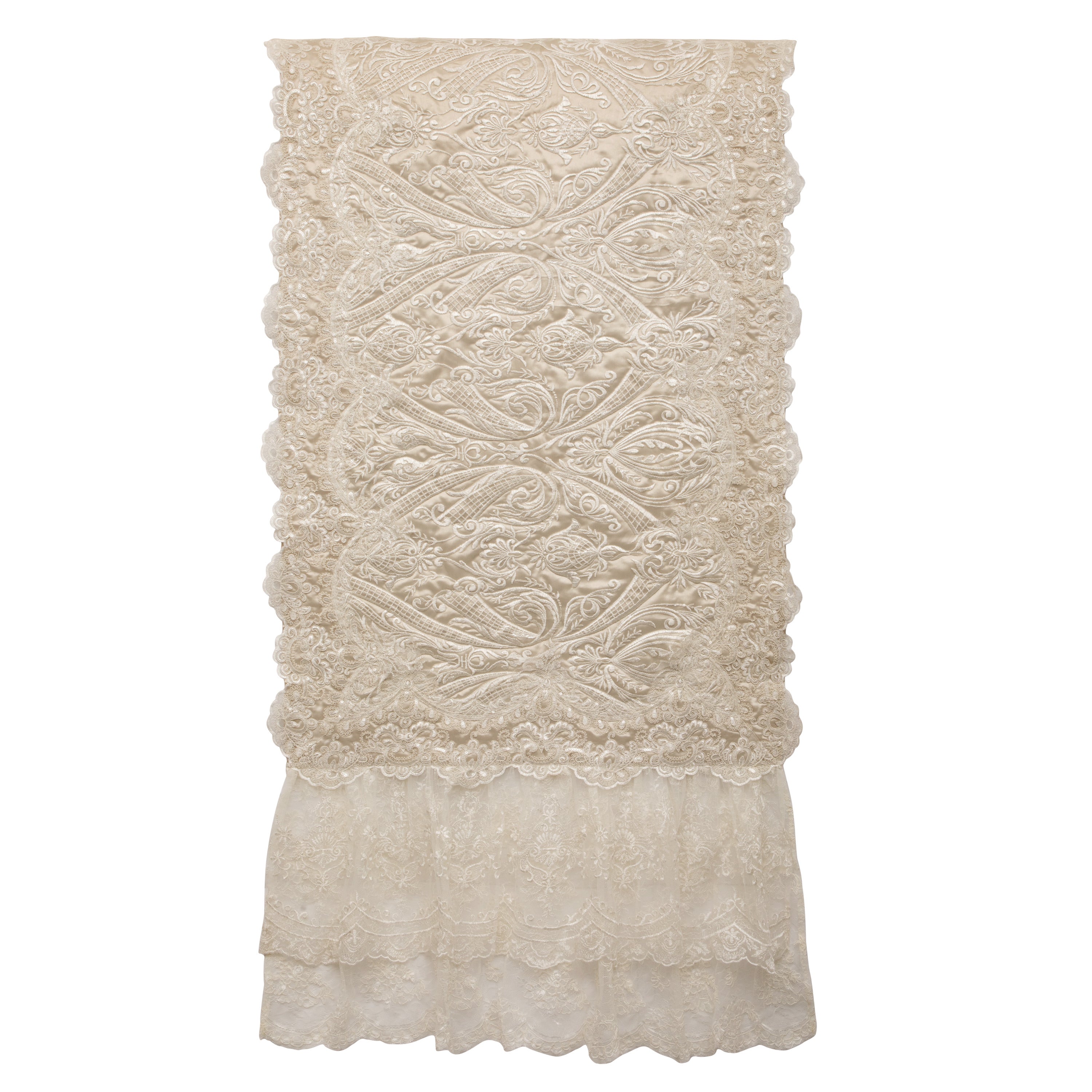 Extra info - Runner embellished with print, lace, quilted front and plain back. Photo colors may vary slightly from actual.