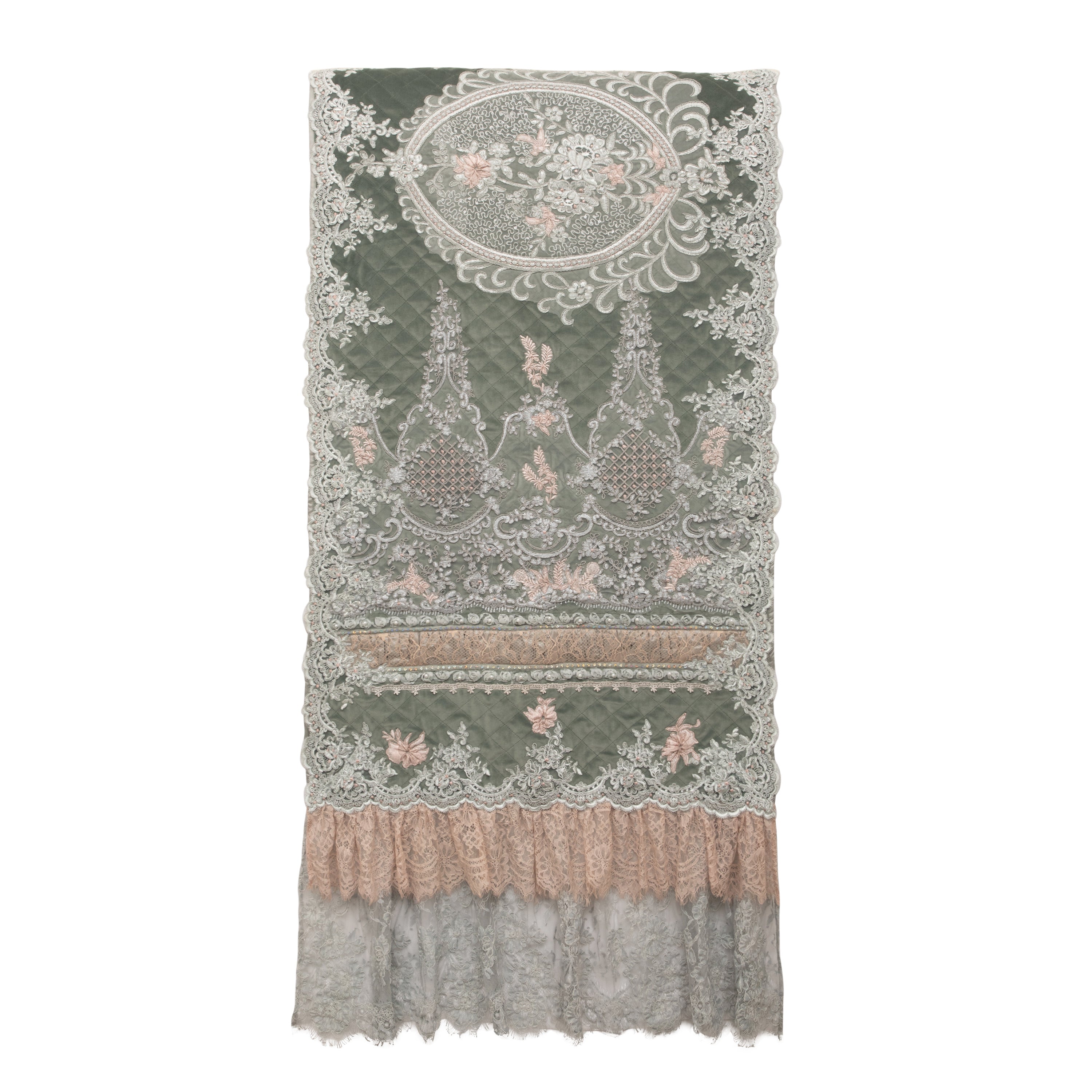 Extra info - Runner embellished , lace,quilted front and plain back. Filler not included with cushion. Photo colors may vary slightly from actual.